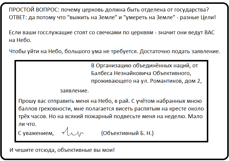 Простой вопрос: почему церковь должна быть отделена от государства?