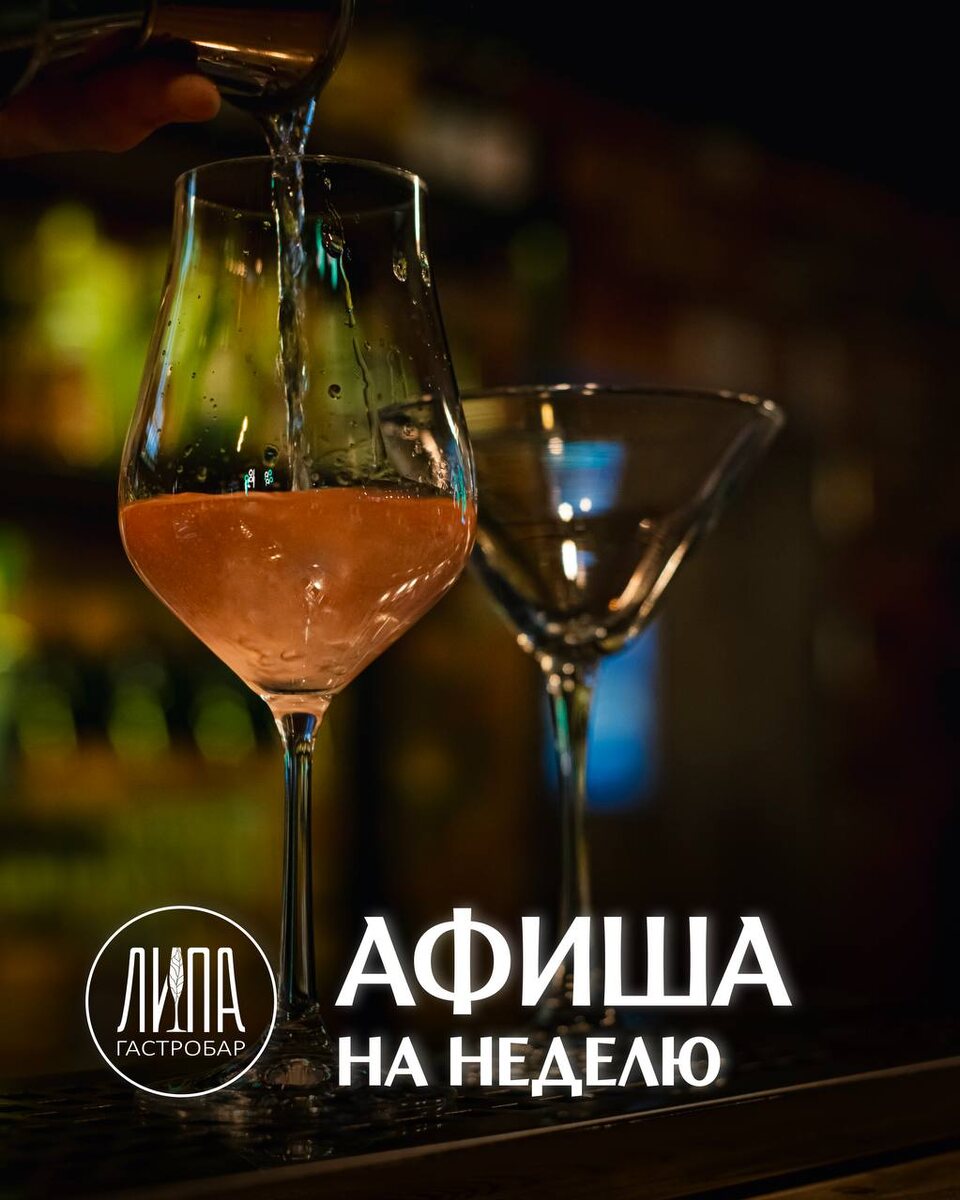 Афиша на неделю с 30.06—06.07: 30.06.(пн) - Акция: "3 коктейля по цене 2" 01.07.(вт) - «Мафия» 🕕19:30 Вход: 600₽ Бронь столов: +7 909 334 9573 — Акция "Все настойки удваиваются" Двойная порция любимых вкусов по цене одной! 02.07.(ср) - "Любовь, вино, сыр" При заказе винного сета действует скидка в 20% на всю винную карту 03.07.(чт) - Stand Up 🕕19:30 Вход: 400₽. Бронь столов: 89170280408 04.07.(пт) - «Английский завтрак» 🕕11:00 Вход: 800₽ Бронь столов: +79962044949 - дегустация коктейлей «Тропики без пафоса» 🕕20:00 4 коктейля - 1000 рублей Бронь столов: +79962044949 05.07.(сб): дегустация коктейлей «Тропики без пафоса» 🕕20:00 4 коктейля - 1000 рублей Бронь столов: +79962044949 06.07.(вскр) —«Музыкальное лото» 🕕19:00 Стоимость участия - 400₽ Бронь: +79962044949