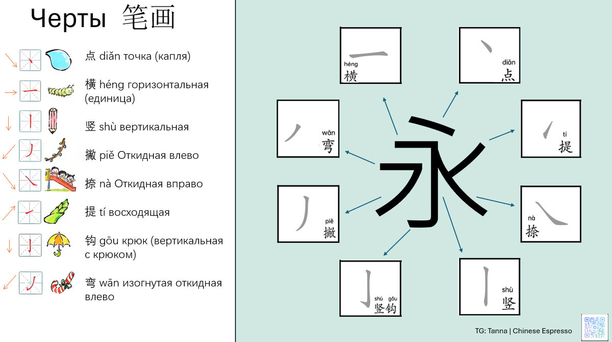 ✏️ Для запоминания черт лучше всего их прописать (пример прописей можно найти в TG-канале: https://t.me/+EKLWEk1ukPI4MWFi. В поиске ищите тему "Урок 1. Основы иероглифики").