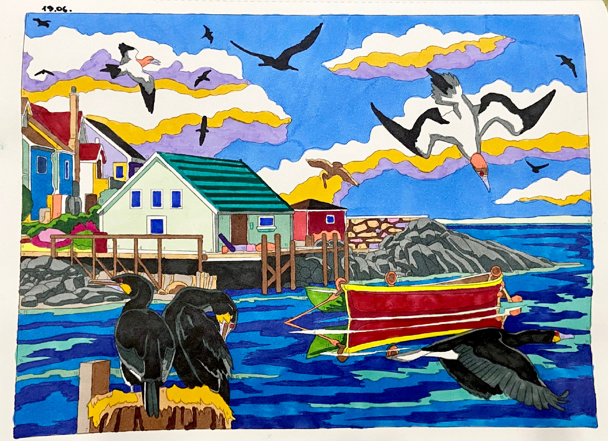 Всем привет! В этом месяце вместо итогового видео за месяц будет итоговый пост. Так вышло, что мне и показывать, в общем-то, нечего🥺 В этом месяце много стрессовала по поводу и без, а когда я на нервах, то никакие раскраски-антистресс, к сожалению, мне не помогают. Мне не нравится ни одна раскраска, подбор цвета в номерах кажется невыносимым, а сам процесс не приносит никакого удовольствия и умиротворения. А должно быть наоборот!… Раскрасила за месяц 4 картинки, и еще одна иллюстрация в процессе🙈 Первая иллюстрация из раскраски By the sea (CH), раскрашивала на конкурс в тг, это хоть какая-то мотивация была)) эта раскраска идет на продвижение, и уже чуть больше половины иллюстраций готовы. Еще одна картинка в процессе, переходит на следующий месяц. Материалы - спиртовые маркеры. Быстро (по меркам КХ) и ярко. Мне нравится🥰 В верхнем левом углу дата - 19 июня. То есть до 19 июня у меня не было раскрашено ни одной работы!! Давно у меня такого застоя в творчестве не было… Вторая картинк