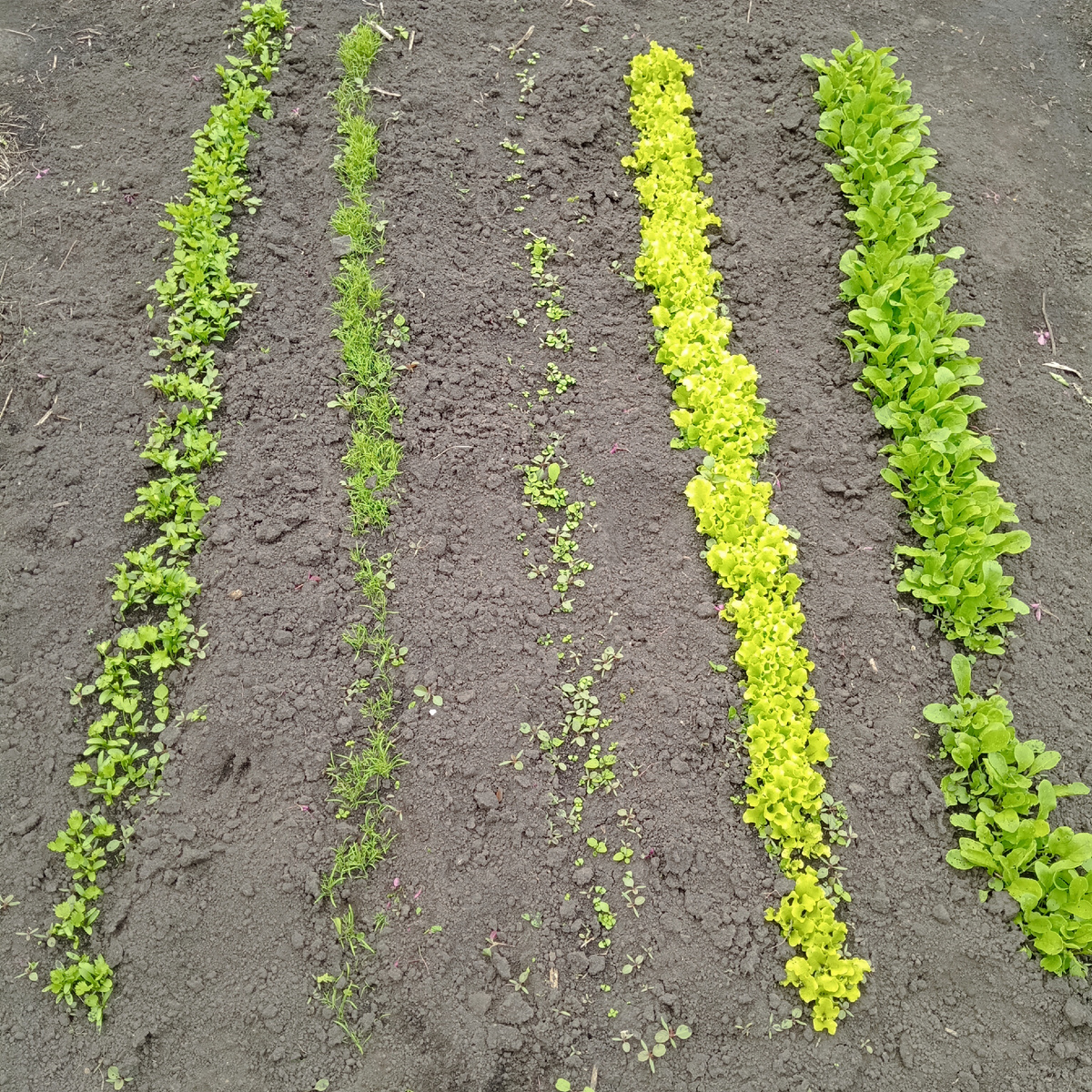 А это после прополки. Бороздки посеяла волной)). Это не важно, главное, чтобы всё выросло и мы этим воспользовались. Справа растут салат и руккола. Те сами растут как сорная трава, что не дают сорнякам развиваться.