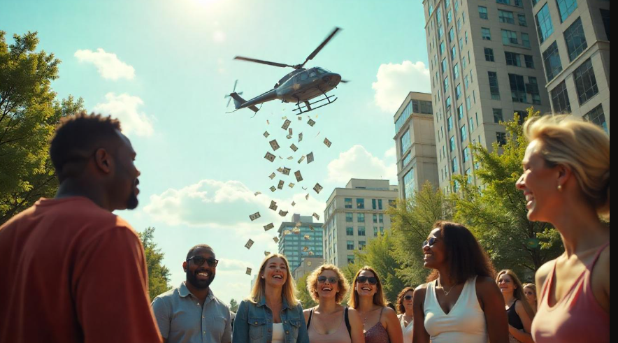 Свидетели рассказывают о невероятном зрелище: вертолет не просто сбросил деньги и улетел. Он завис на несколько минут, давая людям возможность осознать происходящее, прежде чем начался настоящий денежный ливень. Люди выбегали из магазинов, останавливали машины, выходили из домов – все были охвачены одним и тем же чувством изумления и радости.