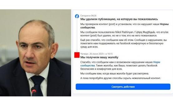 Facebook заблокировал пост Пашиняна ненормативного содержания