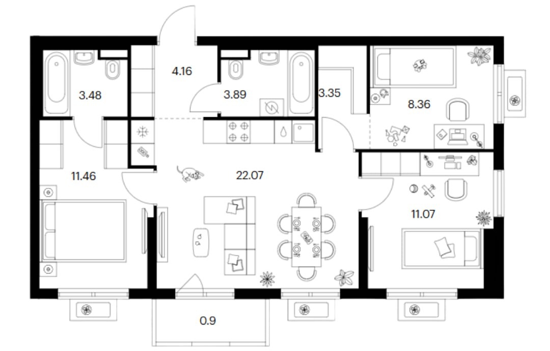 А еще есть такая планировка😊 Представьте, какая светлая будет кухня-гостиная с панорамным окном😍