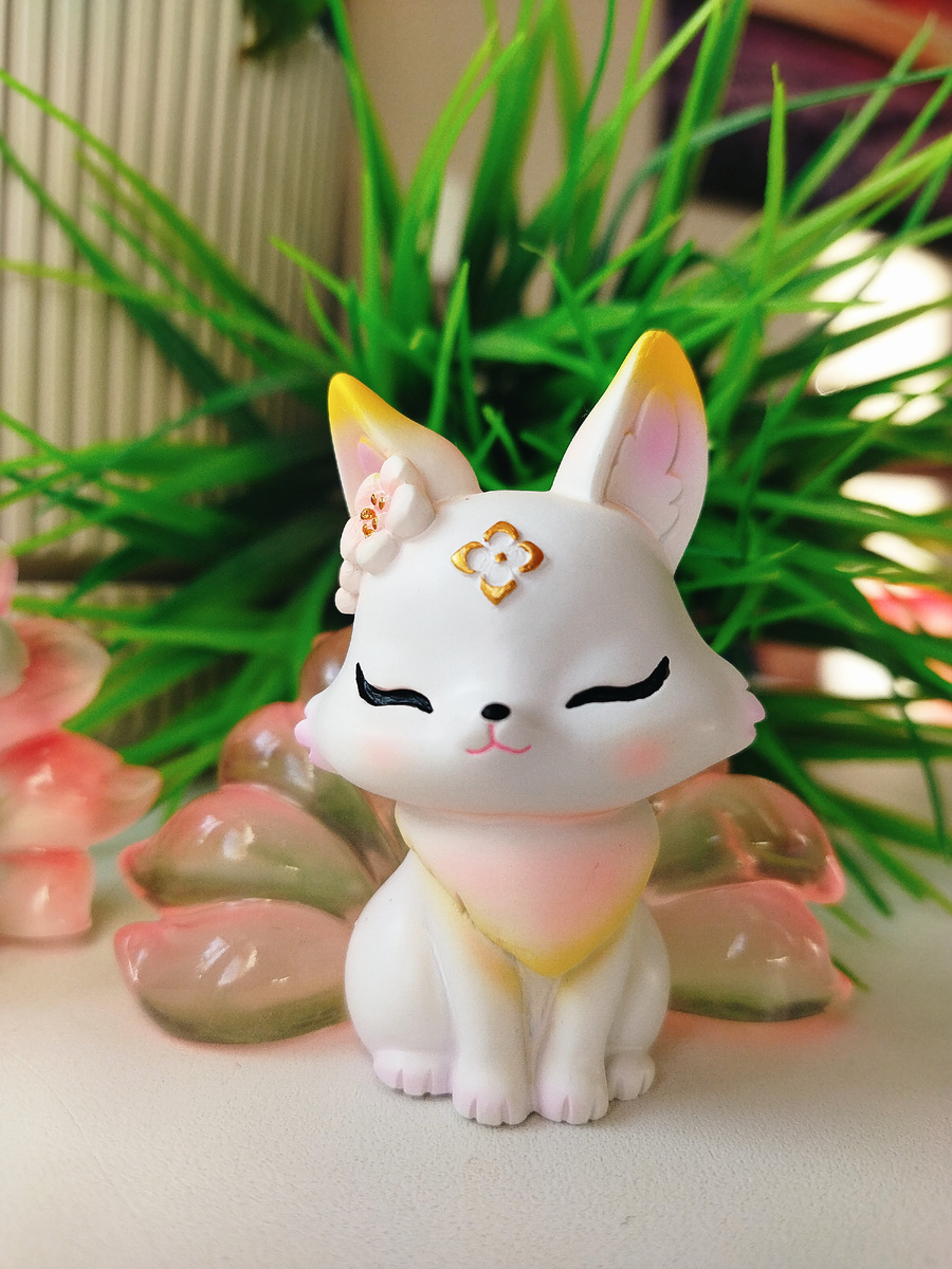 Приветствую сохоббиты и гости канала! ☀️ Ко мне приехала вторая девятихвостая лисичка! Кажется, внутри зарождается большое желание собрать их всех, хотя я не особо понимаю зачем😁 Новая лисичка приехала в жутко помятой упаковке, заводская коробка также была сильно потрепана дорогой. Но повезло, что сама фигурка доехала в целости! Вот она😍 В первую минуту я расстроилась, так как подумала, что лисичка - повторка первой. Однако, дома я поставила их вместе и оказалось, что они всё-таки разные. У них разные украшения на ушках, символы на лобиках. Цветовая схема тоже разнится. Плюс у первой приподняты лапка и мордашка. Кстати, первая уже с коцкой на щеке((( Моей маленькой дочке так понравилась лисичка (которую она называла почему-то кошкой) что играла с ней несколько дней к ряду. И вот результат😁 Сфоткала лисичек рядом с их девизом: "Я - лисичка, и я ничего не хочу делать! Я хочу фыр фыр фыр". Но делать новенькой лисичке что-то пришлось, ведь она поехала с нами в лес провожать сына Мишку в