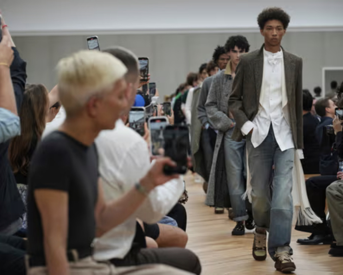 На уходящей неделе состоялся первый показ Джонатана Андерсона для Dior Men. До этого дизайнер работал в Loewe, а у бренда, несмотря на долгую историю, совсем не так много внутренних кодов, как у Dior. К тому же, очевидно, от Андерсона многие ждут многого, учитывая уровень доверия руководства, которое поручило ему все коллекции сразу. Но и свободы и возможностей ему предоставили много (логично, учитывая что Dior любимый бренд Арно) настолько что даже картину из Лувра позаимствовали. Кстати, вот так выглядел пригласительный на показ. Керамическая тарелка с яйцами (они не настоящие) И вот мы увидели дебютный мужской показ. Он получился очень Dior, хотя, некоторые образы, скорее наводят на мысли о каком-нибудь американском бренде. Но в этом есть его особенность: вместе с тем что это Dior, это ещё и очень Андерсон. Например, мужские версии знаменитого «Bar-жакета»— самый очевидный оммаж во всей коллекции — были выполнены в том числе и из ирландского твида из Донегола (Андерсон родился