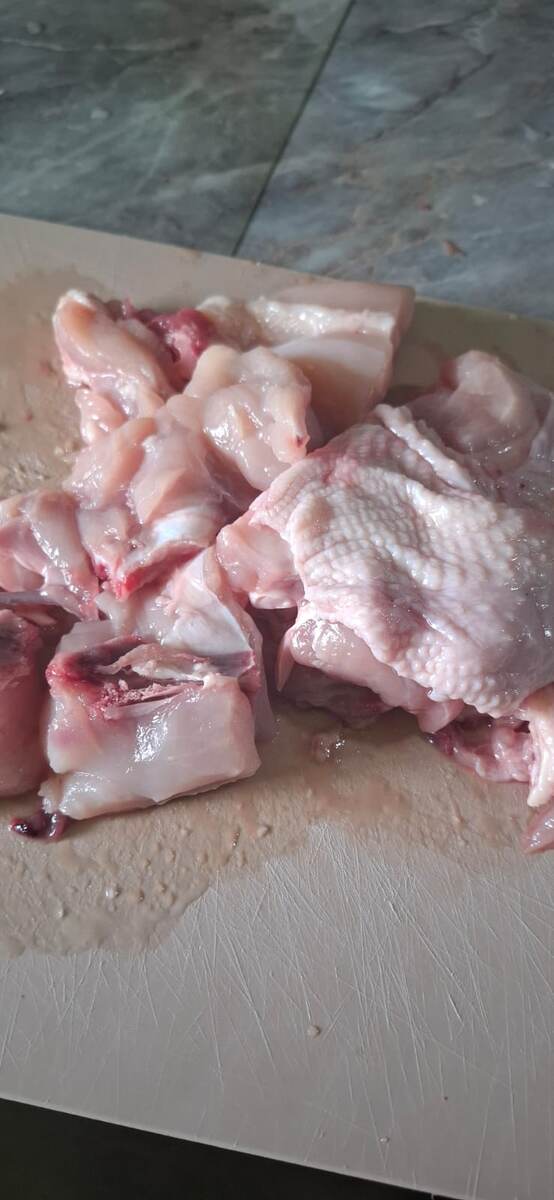 Мясо режем и ставим обжариваться. Я сразу всё делаю в большой сковороде. Пока мясо жарится, моем и чистим все овощи. Дальше режем всё. Я режу всё кубиками чуть больше 1 см. Когда мясо обжарено с двух сторон - добавляю к мясу морковь и лук. Всё обжариваем ещё немного и добавляем все остальные овощи. Накрываем всё крышкой и оставляем тушить на 30 мин. на медленном огне. По истечению нужного времени добавляем специи и солим по вкусу. Сыпем зелень. Тушем ещё минут десять и выключаем. Получается вот такое рагу. Подавать можно с соусом и гренками. Приятного аппетита!!!