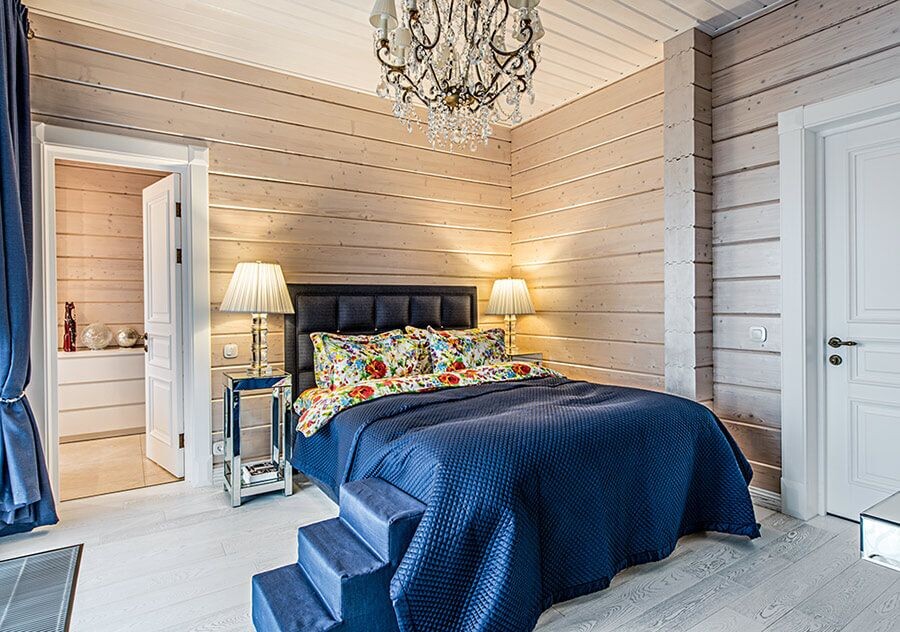 7. Освещение спальни в деревянном доме