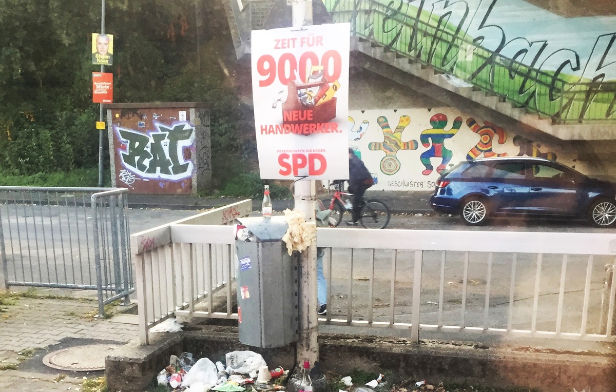 Понятное дело, что увидеть эти "художества" можно далеко не только в Германии. Однако здесь, такое ощущение, проблема с каждыйм годом лишь усугубляется. Я проживаю здесь почти 8 лет и внимательно наблюдаю за происходящим вокруг. От обилия граффити тут, в округе (Франкфурте-на-Майне, Рюссельсхайме, Висбадене и прочих близлежащих городах), порой делается не по себе. Надписи пестреют в этой стране отнюдь не только вдоль железнодорожных путей и на станциях (как на фото ниже), но и в городах, иногда даже прямо в центре. Приведу пару примеров. По какой-то непонятной для меня причине мост буквально испешрён граффити. При этом изображения эти - не произведения талантливых современных художников, а просто хулиганские каракули, уродующие весь вид. Помимо граффити, поверхность обклеена какими-то обрывками наклеек и просто обляпана какой-то грязью. *старый город - нем. Увы! В этот раз я увидела далеко не одну безобразную надпись, прямо на исторических постройках на центральной площади! Город на гл
