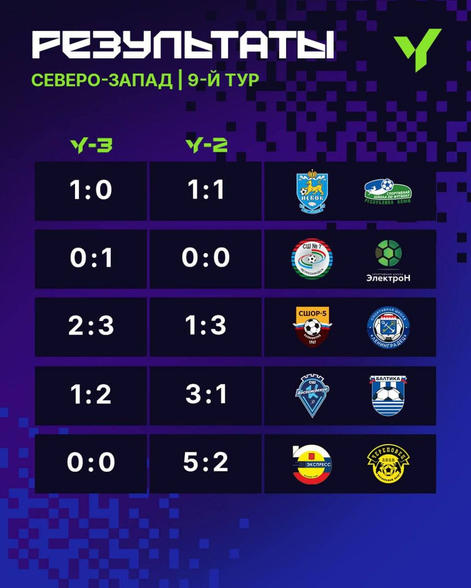 Результаты и турнирная таблица ЮФЛ «Северо-Запад» после 9 тура