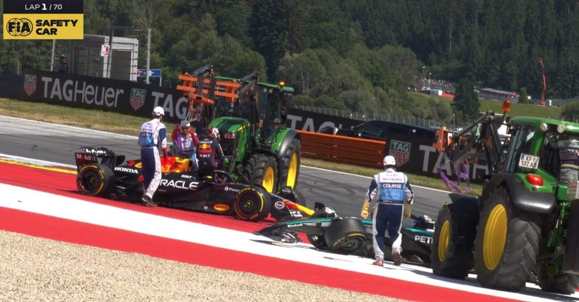 Гран-при Австрии всегда полон ярких моментов – вот и на этот раз начался с инцидента. Уже в третьем повороте молодой пилот «Мерседеса» Кими Антонелли допустил серьезную ошибку и жестко влетел в Макса Ферстаппена. На трассе появилась машина безопасности. Так это выглядело с онборда итальянца: Кими заблокировал шины и выбрал максимально неудачную траекторию при входе в поворот. «Простите за это. Я заблокировал задние колеса, извините», – сказал Антонелли по радио. А это вид с болида Макса. Оба пилота сошли. Антонелли тут же извинился перед пилотом «Ред Булл». Кими извинялся и после финиша – через прессу. «Не думаю, что я именно что опоздал с торможением. Просто торможение было жестким, ведь я был позади сразу нескольких машин. И в этот момент у меня заблокировало задние колеса, из-за чего просто не смог остановить машину. После блокировки задних колес я потерял контроль над машиной, и мне пришлось пытаться увернуться от столкновения с Лоусоном. Но было слишком поздно, потому что скорость