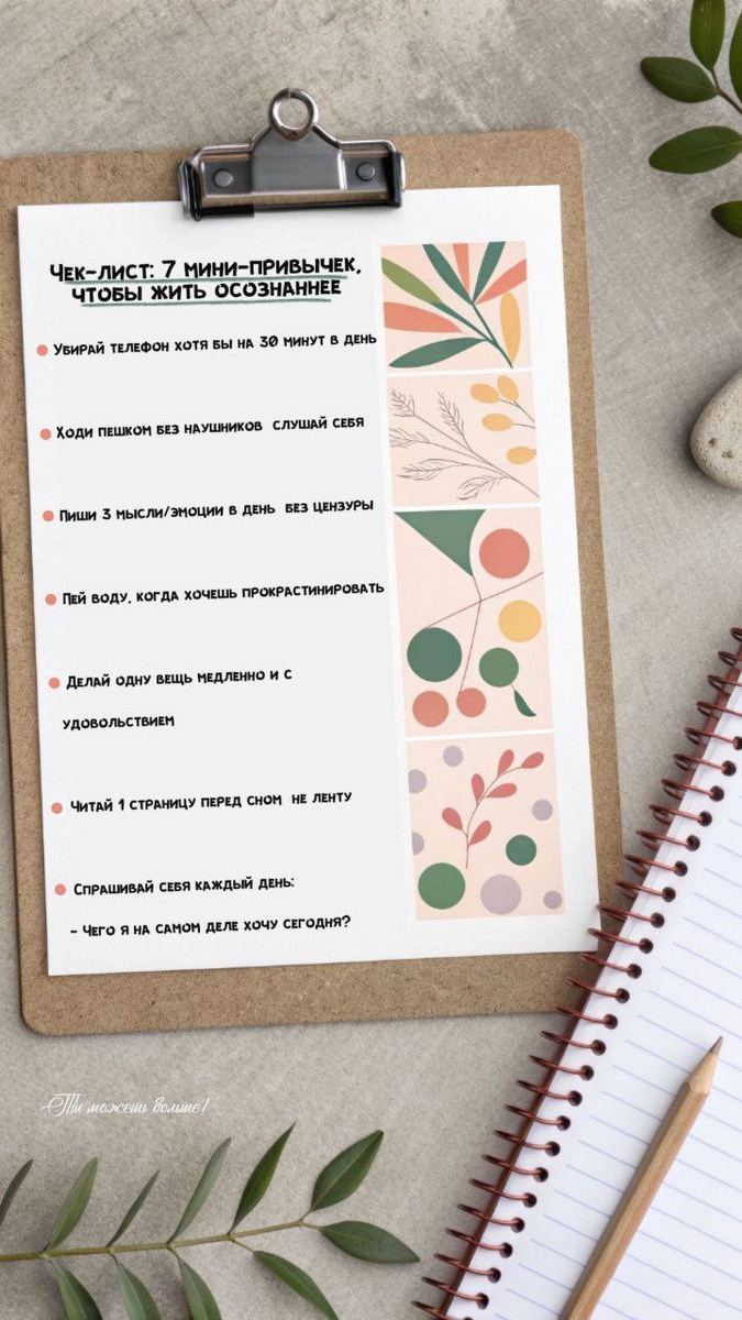 ❤️ Чек-лист: 7 мини-привычек, чтобы жить осознаннее