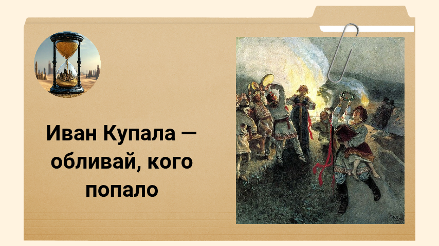Один из важнейших праздников славянского календаря 24.06/7.07 был Иван Купала. В языческой традиции он связан с днем летнего солнцестояния, а в христианской в этот день отмечали рождество св. Иоанна Предтечи, крестителя господня.