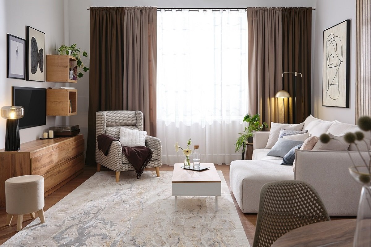 Ковер в гостиной — это не только элемент уюта, но и способ зонировать пространство, подчеркнуть стиль и сделать комнату более тёплой. Но чтобы он не скручивался, не мешал передвижению и органично вписывался в интерьер, важно правильно выбрать место, размер и способ укладки. Перед укладкой ковра важно подготовить поверхность. Пол должен быть чистым, сухим и ровным. Даже небольшие неровности могут привести к деформации ворса и неровному прилеганию. Если поверхность недавно мылась — дождитесь полного высыхания. Старые покрытия, которые выступают, лучше демонтировать. Это касается линолеума со вздутиями, порванного ковролина и ковров с высоким ворсом, уложенных друг на друга. Никаких «бугров» под новым изделием быть не должно. Если ковер был скручен, не торопитесь стелить его сразу. Разверните, разложите на полу и дайте полежать хотя бы пару суток. Он должен выпрямиться, чтобы в будущем не топорщились края. Это особенно актуально для синтетических моделей, у которых края могут долго сохр