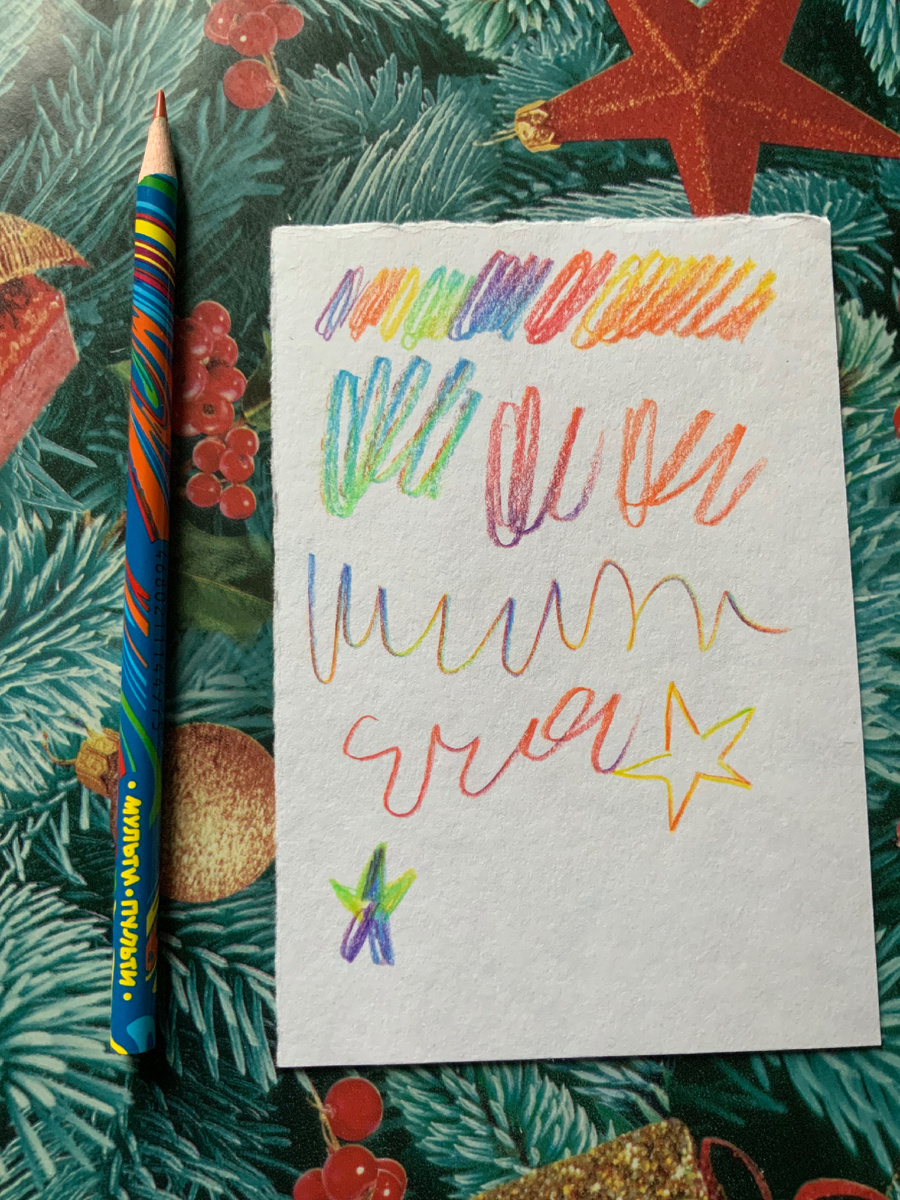 ✏️ Радужный карандаш «Мульти-пульти». Радужный по-настоящему, так как в грифеле 7 цветов: красный, оранжевый, желтый, зеленый, голубой, синий, фиолетовый. Это интересно, так как обычно в карандашах такого типа помещается до 4-х цветов. А здесь 7! Карандаш удачи :))) Задумка, конечно, прекрасная! Но качество могло быть и лучше. Грифель у карандаша достаточно жесткий. И в сочетании с тем, что он тонкий (3 или 3,2 мм диаметром), получается так, что пользоваться им сложно. И все же я рисую им. Например, этим карандашом нарисован портрет Жана Кокто с лошадью. И планирую, конечно, сделать с ним еще что-то интересное. ❤️🧡💛💚🩵💙💜
