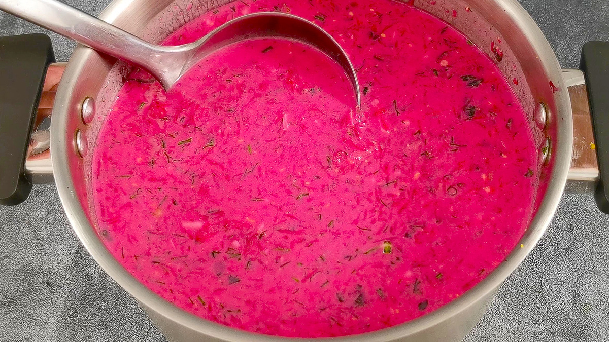Забудьте о привычном борще! Приготовьтесь открыть для себя новое измерение свекольного супа – яркого, освежающего и невероятно полезного блюда, которое зарядит вас энергией и подарит истинное гастрономическое удовольствие. Готовы ли вы удивить себя и своих близких этим охлаждающим и полным витаминов супом? Тогда начнем наше кулинарное путешествие! 1. Для этого блюдо нужно предварительно отварить свеклу. Затем, когда свекла остынет, натереть ее на мелкой терке прямо в 3-х литровую кастрюлю. 2. Затем в свеклу выжать сок половины лимона и сразу перемешать. 3. Огурцы и вареные яйца натереть на крупной терке и отправить в свекле. 4. Зеленый лук и укроп мелко нарезать и положить в ступку. Посолить и потолочь до мягкости. Так зелень лучше отдаст супу свой вкус и аромат. Затем отправить в кастрюлю к предыдущим ингредиентам. 5. Добавить кефир и минеральную воду, посолить, поперчить, положить горчицу и все хорошо перемешать. 6. Для украшения можно подавать с нарезанными вареными яйцами, сметаной
