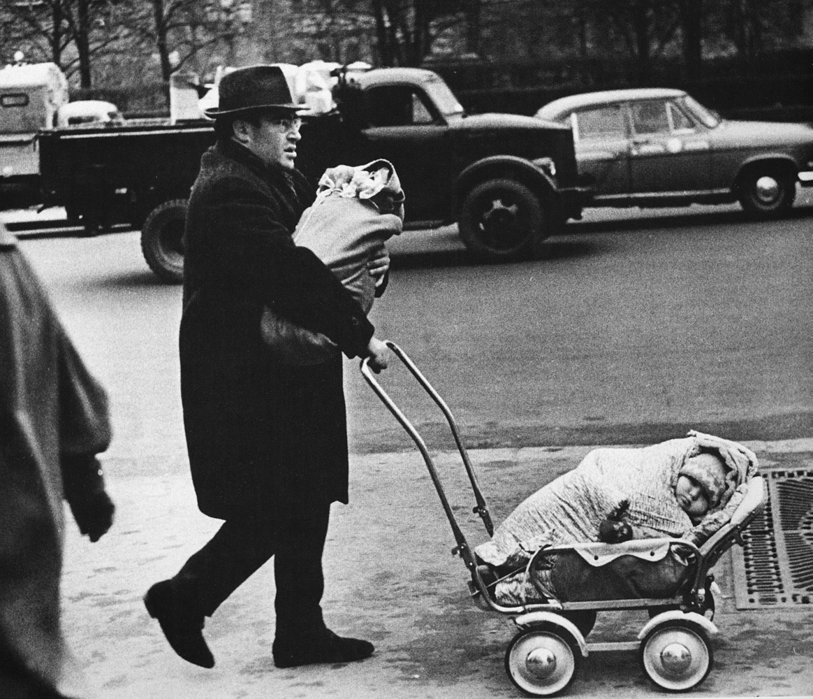 " Москва , 1965 год . Есть фотография , я её снял прямо у дверей здания редакции , когда бежал по зданию , снимать ударников производства. По улице Горького шёл папаша в очках и шляпе , вёз на коляске одного ребёнка , а другого держал на руках. Я сфотографировал эту сценку . После чего случилась интересная и довольно длинная история " - фотограф Виктор Ахломов. " Когда я принёс снимок в редакцию , все заулыбались и тут же начали придумывать подписи , соревнуясь в остроумиии. Но потом подошёл редактор отдела юмора и сатиры , его звали Виктор Веселовский и сказал : " Не царское это дело - подписи придумывать. Пусть читатели придумают. " Был объявлен конкурс на лучшую подпись и назначен приз. Так , благодаря мне , родилась в советской журналистике , и это , совершенно медицинский факт , рубрика " Придумайте подпись . " Или как её потом в " Литературной газете назвали : " Что бы это значило . " Тем временем , мою фотографию опубликовали в " Санди таймс " и сказали : " Давайте состязаться