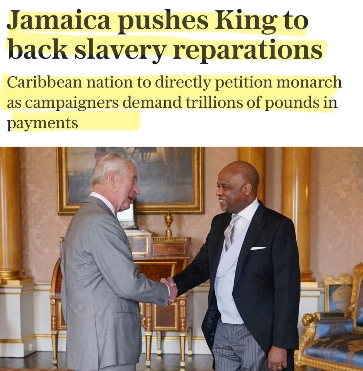 Ямайка потребовала от британского короля триллион фунтов репараций за рабство. @nemediatema