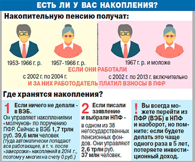 Это дополнительные средства, которые формируются из 6% вашей официальной зарплаты и идут не в общий котёл, а на ваш личный пенсионный счет. Потом, при достижении возраста, всё, что накопилось, выплачивается вам или сразу, или частями. Плюсы накопительной пенсии: Живой пример: