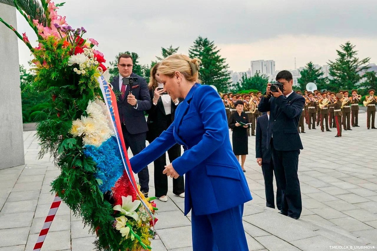 Ольга Любимова в Пхеньяне возложила цветы к мемориалу советским воинам, погибшим при освобождении Кореи от японской оккупации в 1945 году