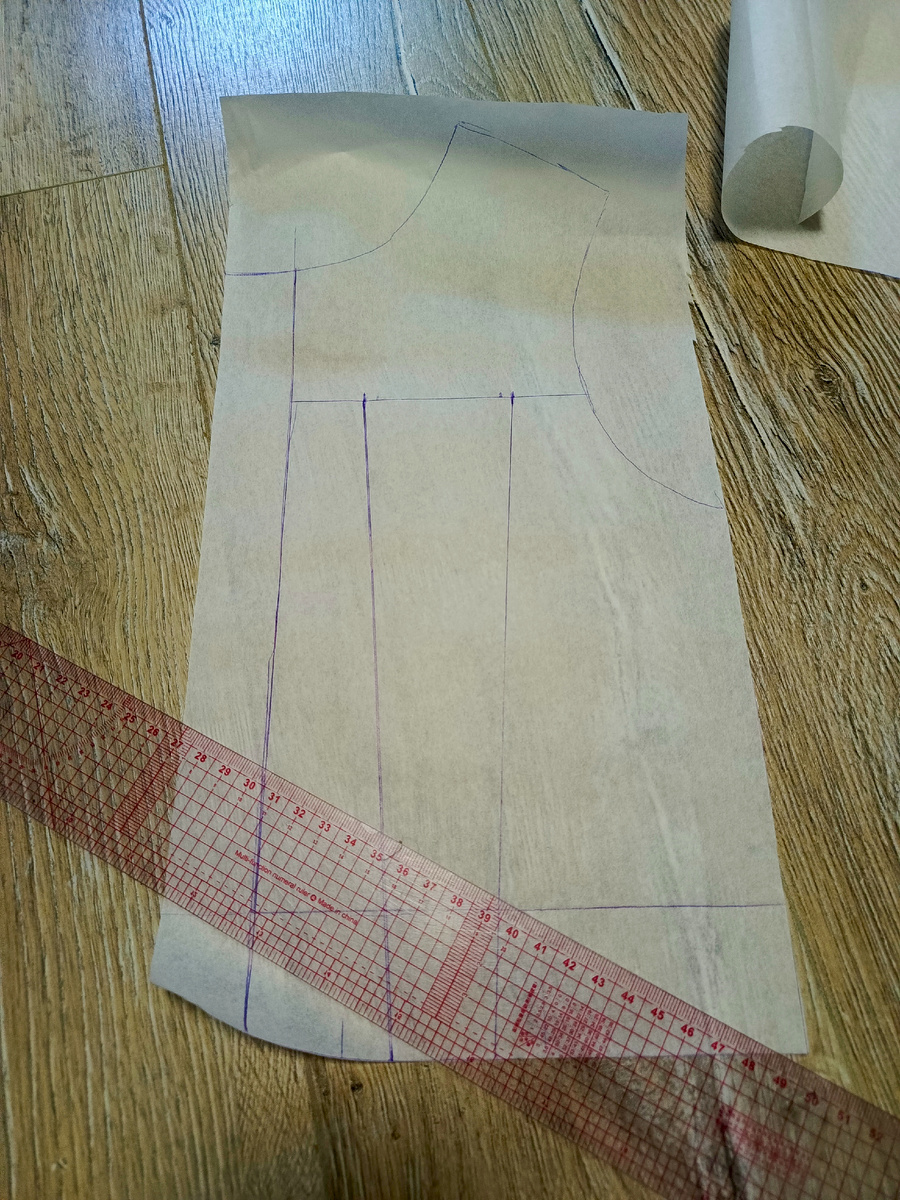 Я уже говорила, что когда кроила свои шорты, остался небольшой отрез ткани, который я решила пристроить на обновку для младшего сына. Выкроила я ему шортики и остался ещё кусочек. Подумав, решила сшить жилетку в комплект к шортам. Зачем она такая не понятно - тут в пору на толстом утеплителе жилетки шить 😂 Но у меня тогда идеи закончились. Придумать ничего не могла. Насмотрелась в интернете идей и решила поколдовать. Вопрос был только с выкройкой. Искать готовую было лень. В итоге я взяла выкройку демипарки (🙈🤣), перевела ее на кальку и внесла некоторые изменения: наметила рельефные швы, кокетку, убрала длину и немного ширину, добавила планку для кнопок. В итоге получился вот такой комплект. Вообще, все джинсовые жилетки идут с воротничками, но у меня ткани не было и я сделала обтачку. Причем закреплять ее пришлось ручными стежками. По всему периметру. Клапан рисовала от руки. На проймы тоже хотела сделать обтачку, но ткани не хватило. Сделала бейку. Кроила из кусочков. Жилетку укра