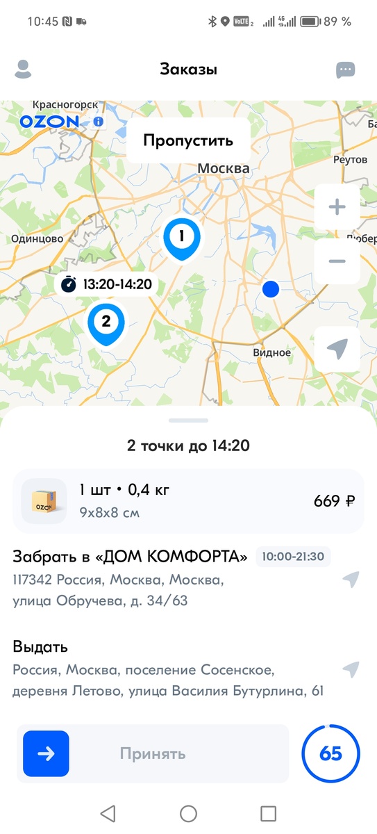 И в 13:29, после часа безделья я нашла такой заказик 😊До отправителя на Котляковском переулке 20 минут. И по приезду меня ждало удивление. От этой компании я периодически беру заказы, и даже пару раз с ними ругалась, когда мальчик-менеджер думал,что я поеду прямой машиной, а я набрала к их заказу еще 2 😁😁😁😁 По тому заказу приехала в указанный интервал - значит все ок. И со стороны себя и со стороны Доси - я прилежный водитель.