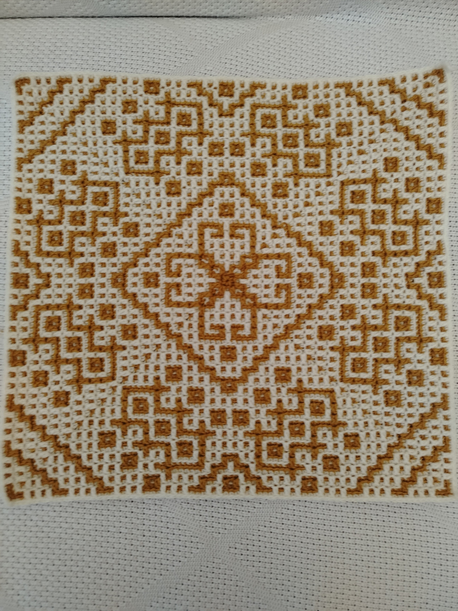 Как всегда, образец вязала нитками 280 м в 100 гр, крючком №3. Образец получился = 39х39 см, и на него ушло ниток всего 116 гр.