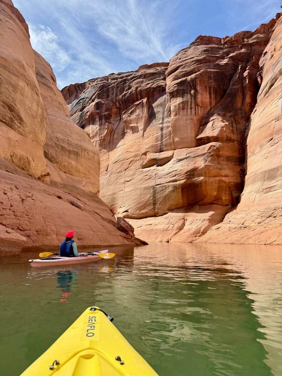 🧭 Каньон Антилопы, Аризона Когда я ехала в Каньон Антилопы, в глубине души надеялась увидеть настоящих антилоп. Но — увы! Эти грациозные животные, благодаря которым каньон получил своё название, здесь больше не водятся. Остались только легенды… и скалы. Величественные, волнообразные стены песчаника, словно вырезанные художником. 📍 Каньон находится в северной части Аризоны, на земле народа Навахо. Территория священная, и попасть туда можно только с гидом — самостоятельный проход невозможен. Каньон делится на две части: Верхний и Нижний. И, конечно же, мы не смогли выбрать между ними — взяли два тура. 🛶 Первый тур — на лодке. Не для новичков: — 2 часа гребли по воде, — потом 1 час пешком по раскалённой пустыне, — и снова 2 часа обратно. Тяжело. Но виды — словно с другой планеты. Красота, которой нет равных. 🚶♀️ Второй тур — пеший. До входа в каньон — 2 минуты, никаких физических испытаний. И всё равно — вау. Узкие проходы, игравшие всеми оттенками красного, и лучи света, пробива