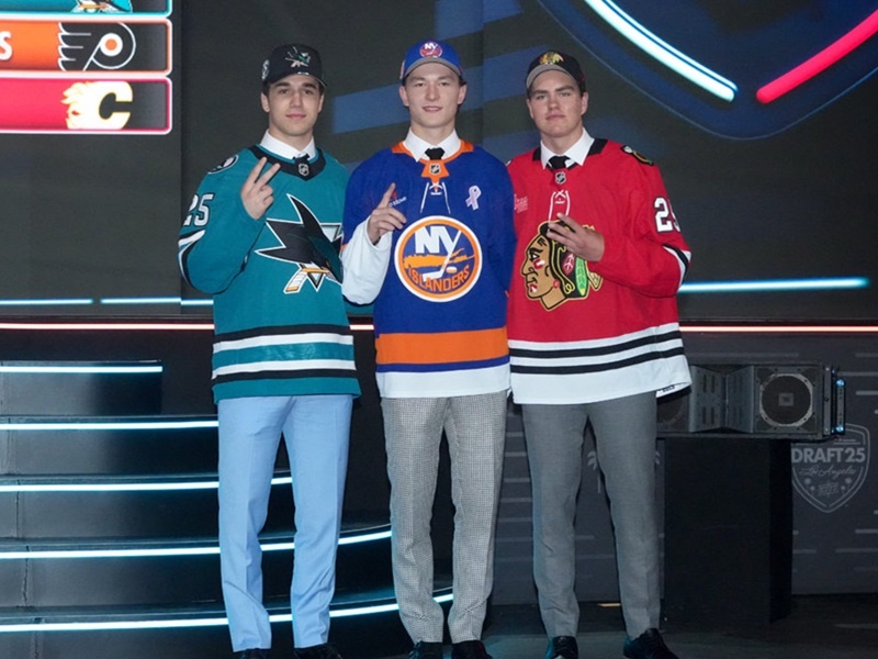 А с нашими не все так плохо. В Северной Америке прошел драфт НХЛ. Ежегодное мероприятие, где клубы выбирают лучших юниоров мира. Вернее, закрепляют права за ними на будущее. Драфт НХЛ-2025 проходил в Лос-Анджелесе. Отличие его в том, что этот драфт проходил удаленно. Многие менеджеры жаловались, что им тяжело обсуждать кандидатов в шумной атмосфере, когда рядом представители других команд. Плюс были высокие затраты на перелеты, проживание и так далее. Поэтому НХЛ пошла навстречу клубам. Хоккеисты и зрители собрались на концертной и театральной площадке Peacock Theater. А после выбора на драфте игрок шел в специальную комнату, чтобы пообщаться с менеджерами удаленно через видеосвязь. Идея, мягко говоря, не оправдала ожидания. Не хватало шума, не было какой-то динамики и вообще атмосферы торжественности данной церемонии. То есть, раньше драфт НХЛ выглядел как что-то значимое для игроков, в Лос-Анджелесе эта торжественность через картинку не передавалась. Если в первом раунде команды еще