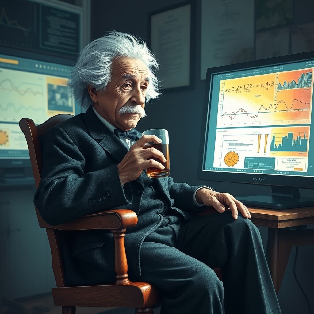 Старый профессор Эйнштейн (ирония судьбы, конечно) сидел в своем кресле-качалке, попивая остывший чай и глядя на мерцающий экран монитора. На экране плясали сложные уравнения, перемежаясь с графиками, больше похожими на абстрактные картины, чем на что-то понятное.