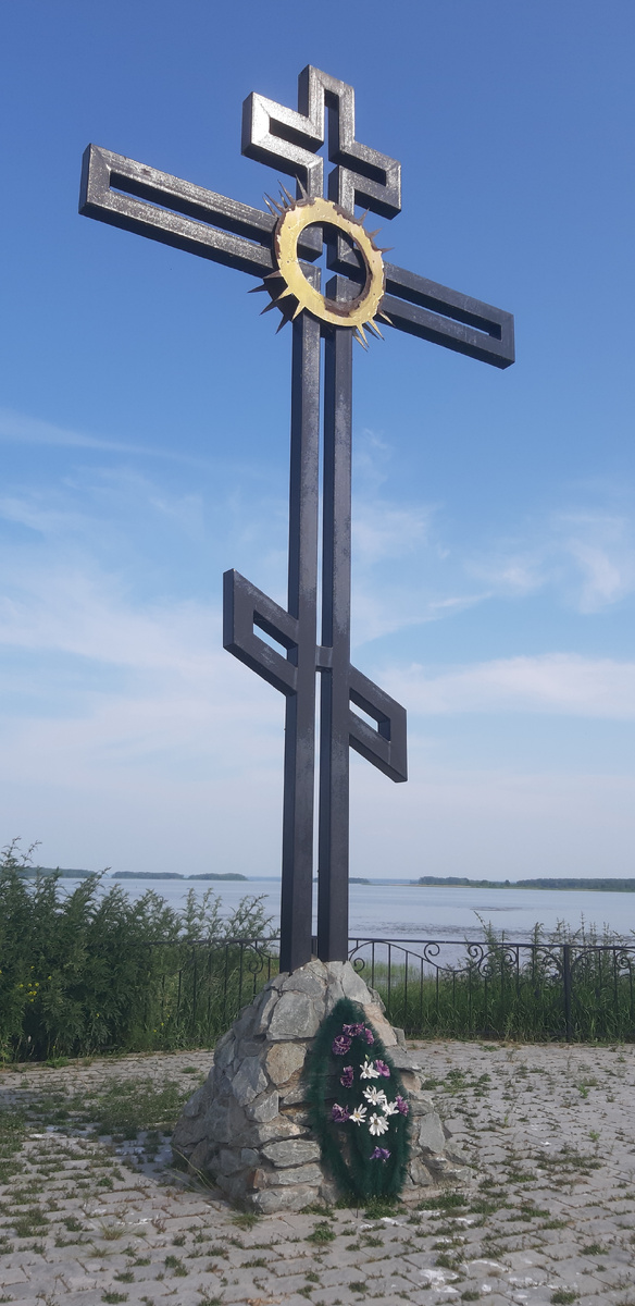 Следуя точно по указателям, нашли на берегу реки Ирмень памятный знак (крест), установленный на месте битвы с ханом Кучумом. Воротца кованой ограды были заботливо прикрыты, чтобы на территорию исторического места не проникла с неприличными намерениями какая-нибудь случайная корова. А неприличные люди сюда не доберутся, особенно по указателям. Для них тут ничего нет. Огромный простор открылся, раскинулся во все стороны. Вечный покой. Луга, как на ладони. Река в плоских берегах, без конца и начала. Как будто не тронутый временем кусок Сибирского ханства. Здесь был хан Кучум. После гибели Ермака и разгрома его отряда Кучум восстановил свою власть и обложил данью большую часть Западной Сибири. Но даже если бы и малую, это всё равно много, очень много, очень-очень много. Попутно хан не забывал совершать набеги на русские крепости и остроги. И велел царь Борис Годунов снарядить против Кучума приличное войско: целых 700 стрельцов и казаков, да в придачу 300 служилых татар. Шутка ли, 1000 чело