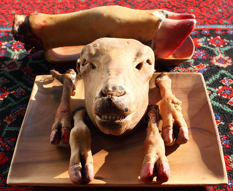 Вот голова, вот ножки, вот говяжья ножка - из всего этого получится замечательный хаш - любимое блюдо Чингиз-Хана, за любовь к которому, говорят, его упрекали и подозревали в нём простое происхождение.