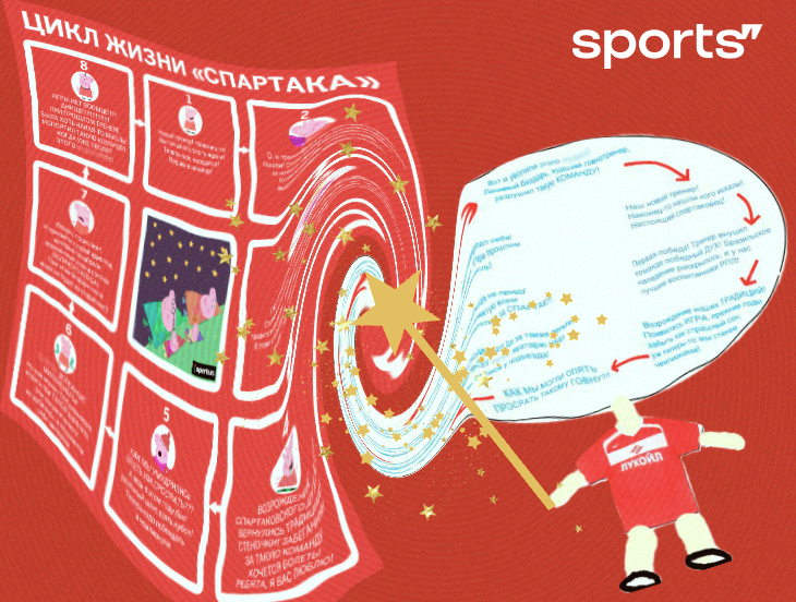 В середине 2010-х картинка с циклом «Спартака» порвала интернет, была уместной и смешной: с 2013-го тренеры менялись чаще раза в год, а от каждого ждали чуда. На любого нового смотрели как на спасителя. Команда давно не становилась чемпионом, но надежда сохранялась, потому что титул пару раз был совсем рядом – и в 2007-м, и в 2009-м. В 2012-м разговоров о титуле не было, но тогда тоже случился приятный период: «Спартак» красиво затащил серебро и ворвался в Лигу чемпионов. Под это дело подъехал отличный испанский тренер, с которым возвращались править. Конечно, ожидания от Унаи Эмери были запредельными. А какими еще? Увы, все быстро рухнуло. Терпения не хватило никому: ни Федуну, ни Карпину, ни болельщикам, ни самому Эмери, который расклеился и поплыл. Зато амбиции и настроение никуда не делись: когда ты рос на бесконечных чемпионствах, сложно принять, что их больше не будет. Конечно, сначала верили в Валерия Карпина. Потом надеялись на Мурата Якина. Дальше болельщикам обещали спартако