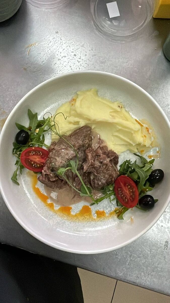 Говяжья щека томленая 8 часов с бадьяном ,гвоздикой ,смеси перцев и красным вином