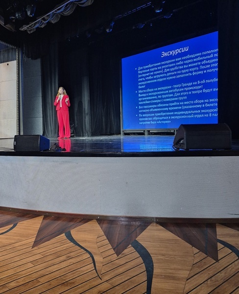 Начинался он вполне радостно. С утреннего солнышка и легкого покачивания на волнах. Я может быть еще поспал, но без четверти десять громко и решительно динамик в номере объявил, что в 10:30 в театре состоится презентация экскурсионной программы. Состоится и ладно – я перевернулся на другой бок. Динамик понял, что с задачей не справился и подождав, пока я крутился, надеясь вернуть себе хотя бы еще полчасика сна, ровно в десять еще раз торжественно объявил, что осталось всего полчаса до этого важнейшего события. Я понял, что проиграл и, почистив зубы и надев выглаженную позавчера рубашку, покорно отправился в театр. Анна подошла чуть позже. По дороге выдали листовки с перечнем экскурсий. Их было очень много, и я пытался угадать, в каком формате их будут презентовать.