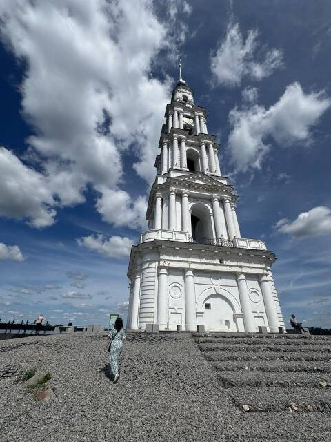 Хорошая погода позволила на катере добраться до Монастырского острова, где началось восстановление разрушенного и затопленного в 1940х гг. при строительстве Углического водохранилища Троицкого мужского монастыря, основанного прп. Макарием Калязинским, который посещали царь Иван Грозный, Борис Годунов, императрица Екатерина II, император Александр II. Именно прп. Макарий благословил купца Афанасия Никитина на его путешествие в Индию.