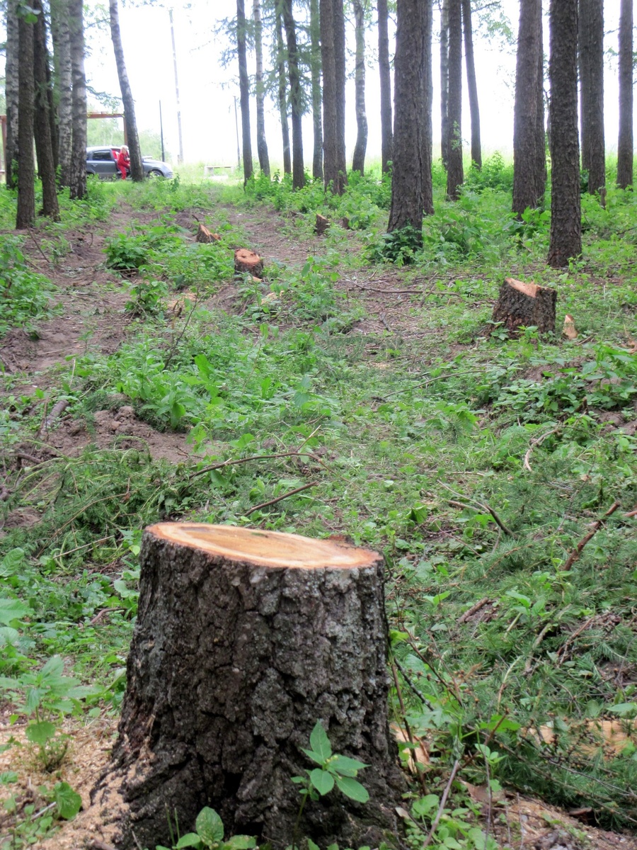 В парке в Толмачево продолжается вырубка деревьев во время реконструкции