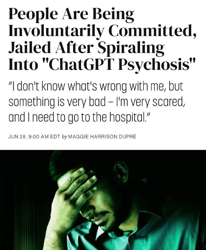 😱 CHATGPT-ПСИХОЗ: НОВАЯ ЭПИДЕМИЯ? Люди МАССОВО сходят с ума из-за ChatGPT. Учёные даже придумали этому явлению отдельное название — психоз ChatGPT. Симптомы у всех похожие: потеря аппетита, увольнения и даже депрессия. Пользователи буквально меняют реальную жизнь на переписку с нейронкой. Одна женщина поделилась историей в издании Futurism. Её муж обратился к ChatGPT за помощью с рабочим проектом, но спустя 12 недель начал обсуждать с нейронкой философские вопросы. В какой-то момент он решил, что взломал математику и физику и взялся за грандиозную миссию по спасению мира. В итоге его пришлось отвезти в психиатрическую клинику. И таких историй — множество. Будьте осторожны с фанатами ChatGPT. Что думаешь по этому поводу? Пиши в комменты! #ChatGPT | ВСЁ ПРО AI | AI NEWS | Дзен | ОК