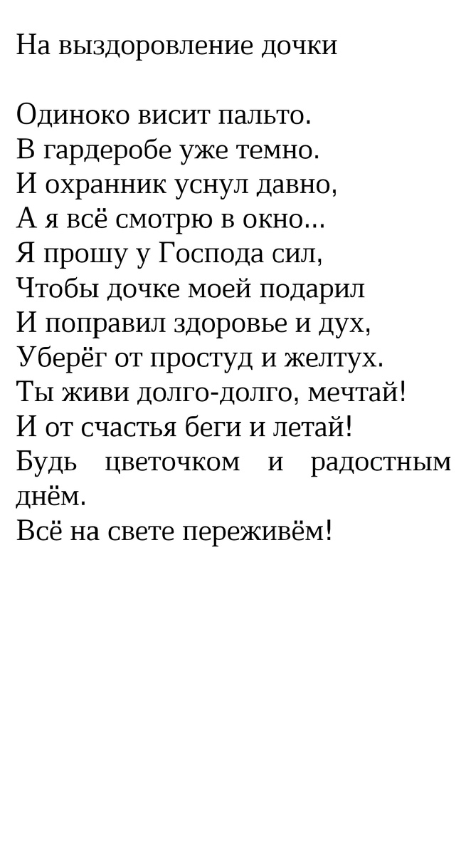 Мой стих "На выздоровление дочки"