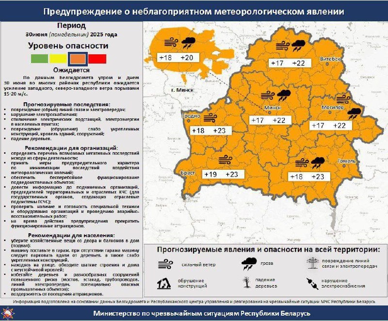 ⚡️На 30 июня по всей стране объявлен оранжевый уровень опасности из-за сильного ветра