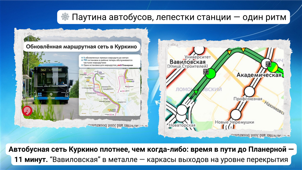 А возле станции «Планерная» сделали одну единую площадку пересадки: больше не нужно метаться между тремя разными карманами, высчитывая, где притормозит ваш автобус.