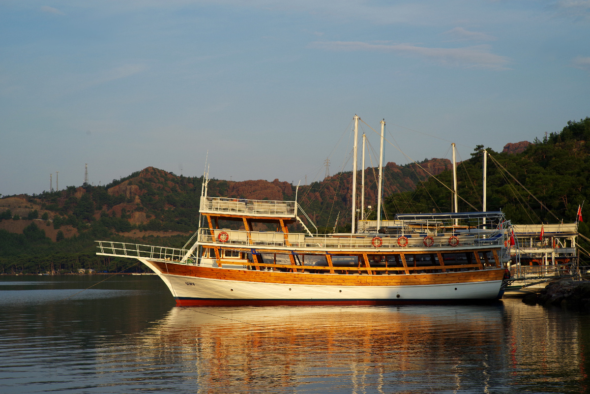 Я много, очень много и подробно рассказывал о нашем отдыхе в сказочно красивом отеле PGS Fortezza Beach Resort, куда в конце мая мы вернулись в четвертый раз. И каждый раз говорил о красоте гор, что окружают отель и залив Хисароню. Три раза мы вообще никуда не выходили, если не считать наших походов на байдарке по реке, что протекает рядом с отелем и впадает в залив в сотне метров от восточной границы. В четвертый раз мы, наконец-то, совершили "вылазки" из Фортеззы. Первая такая вылазка была к экскурсионным кораблям, что стоят на якоре неподалеку от отеля на западе. Каюсь! Двигала нами корысть. Жене захотелось повторить морскую экскурсию, но платить цену, которую ломит Пегас, не хотелось. Вот и решили узнать нельзя ли договориться непосредственно с командой кораблей. Сразу скажу, что ничего к нас не вышло. Мы пошли туда слишком рано, когда на кораблях никого из начальства не было. Или спали, или ещё не приехали. А полусонные матросики, которых мы встретили, ничего ни по-английски, н