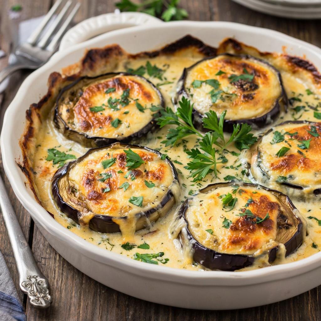 Баклажаны по-французски — это блюдо французской кухни, которое представляет собой запеканку из баклажанов, картофеля, помидоров и сыра, приготовленную с добавлением сливочного масла и специй. Это простое, вкусное и ароматное блюдо, которое идеально подходит для семейного ужина или праздничного стола. 📌Ингредиенты: - Баклажаны — 2 штуки среднего размера - Картофель — 3–4 средних клубня - Помидоры — 2–3 штуки - Сыр твердый — 100–150 граммов - Масло сливочное — 50 граммов - Молоко — 1 стакан - Мука пшеничная — 2 столовые ложки - Яйцо куриное — 1 штука - Соль, перец, мускатный орех — по вкусу - Свежая зелень (петрушка, укроп) — по желанию 📍Приготовление: 🍆Шаг 1: Подготовка овощей 1. Баклажаны помыть, нарезать кружочками толщиной около 1 см. Посыпать солью и оставить на 15 минут, чтобы удалить горечь. Затем промыть водой и обсушить бумажным полотенцем. 2. Картофель очистить, нарезать тонкими ломтиками. 3. Помидоры нарезать кольцами или полукольцами. 🍆Шаг 2: Приготовление соуса бешаме