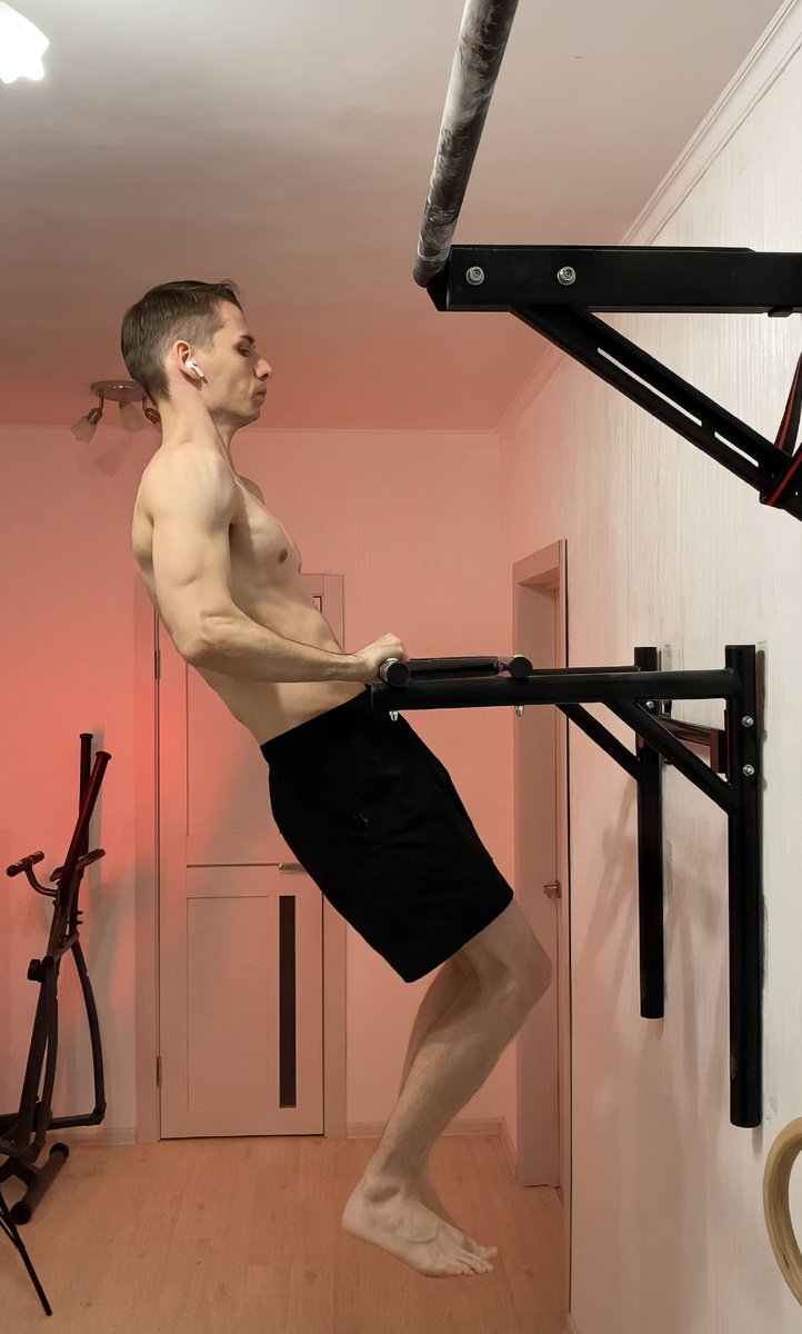 💡Если у вас слабый пресс – вам будет тяжело контролировать тело в верхней фазе подтягивания!