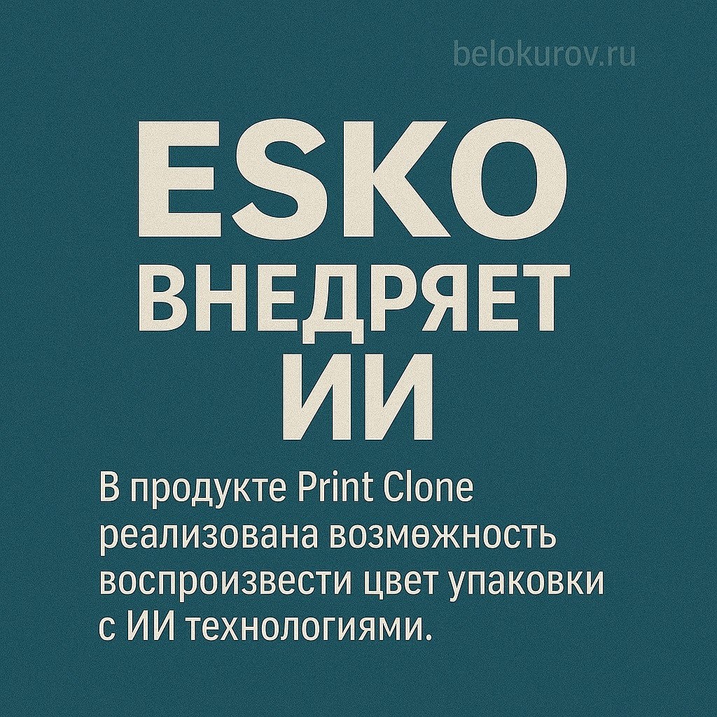 Вышла новость что Esko представила Print Clone — облачное решение на базе ИИ для точного воспроизведения цветов в цифровой печати. Оно позволяет быстро и точно повторить цвет ранее отпечатанных упаковок вне зависимости от типа печати, исключая ручные корректировки и метод проб и ошибок. Правда не раскрывается, как именно применяется ИИ — нет описания алгоритмов, этапов обработки или технических деталей. Звучит та все красиво. В западных фирмах очень многие компании просто на перебой объявляют, о том, что внедряют ИИ в свои продукты. Первым делом размещаю посты тут — https://t.me/sergeybelokurovinkjet
