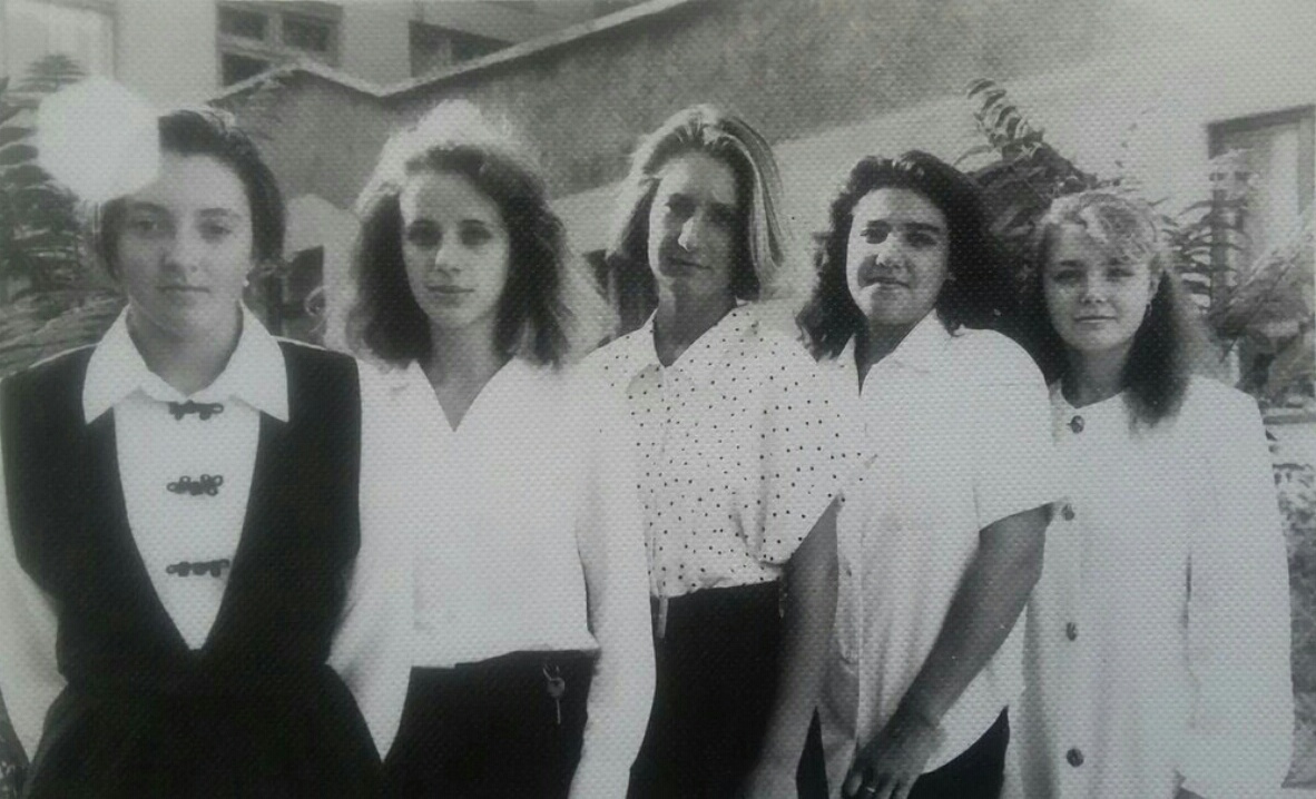 ПРО ФОТО: с Последнего звонка сестры класса, она вторая слева, остальных визуально знаю, в этой же школе учился, но по имени-фамилии - нет кроме Вики Бучной, она по центру, так как она, её сестра Таня Бучная, а также Марина Балабанова, Наташа Казанцева, Лариса Рябинина и другие из девичьей половины тусовки Юмашева 11/Фадеева 11 (рядом дома, да соединённые, не без путаницы, даже если с указателями, табличками порядок) и других домов в округе - это те, с кем мальчишичья половина этой тусовки проводила своё детство, святое по сравнению с нынешним. А в этих дворах - наравне с находящимися рядом парком Победы, его пляжем и катакомбами на его территории, 100-летней 15-й Береговой батареей, сейчас отделённой от него застройкой и улицей Парковой, появились недавно, уменьшив парк более чем в 2 раза, обо всём этом писал.