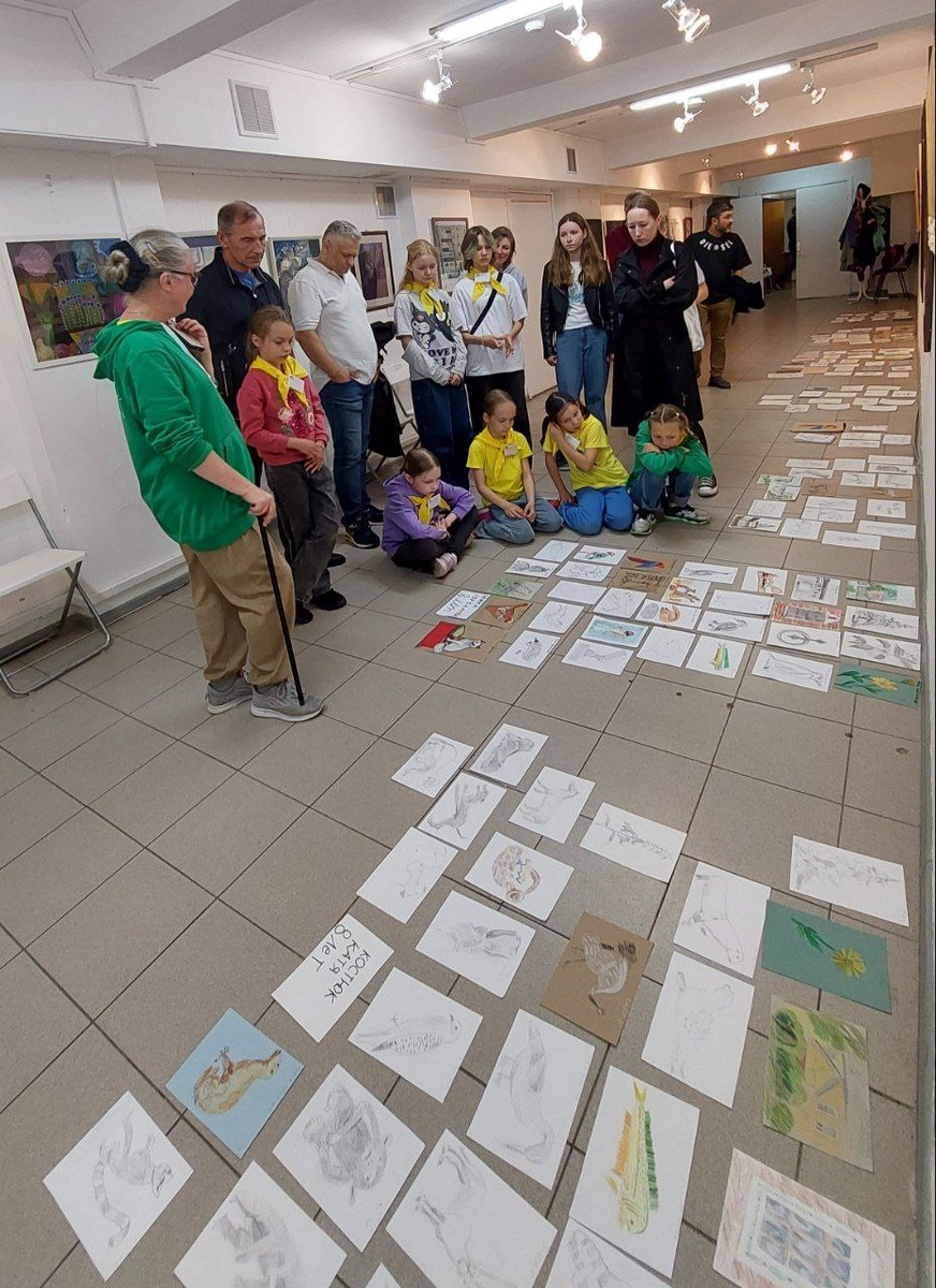 В конце каждой художественной смены у нас проходит отчётный просмотр где все ученики раскладывают свои работы выполненные за неделю.