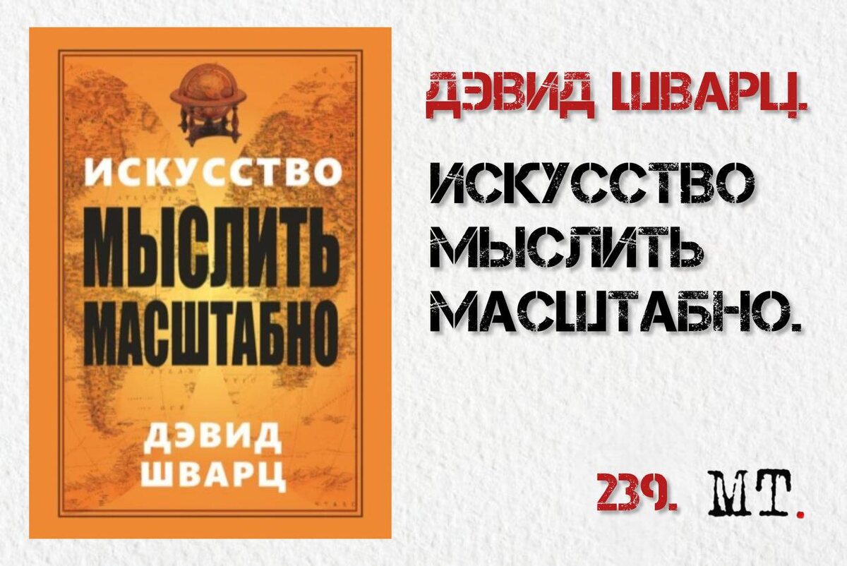 📚Искусство мыслить масштабно. О книге: Излагаются практические советы, методики и принципы масштабного мышления, овладев которым вы сможете достичь успеха в любой сфере деятельности. Автор: Дэвид Шварц — профессор Государственного Университета Джорджии, Атланты, был признан ведущим американским авторитетом в области мотивации. Основная идея: Ваши достижения зависят от того, насколько масштабно вы мыслите. Большие цели требуют большой уверенности в себе, отказа от ограничивающих убеждений и готовности действовать, несмотря на страх и сомнения. Думайте смело — и начнёте достигать большего. Цитата из книги: Всегда выбирайте лучшее. Вы не можете позволить себе жизнь «второго сорта». Краткий анализ: Книга построена на идее, что мышление определяет действия, а действия — результат. Шварц призывает мыслить дерзко, верить в свой успех, бороться с «психологией проигравшего» и развивать уверенность через конкретные действия. Он приводит рабочие принципы: действуйте, будто вы уже успешны; и