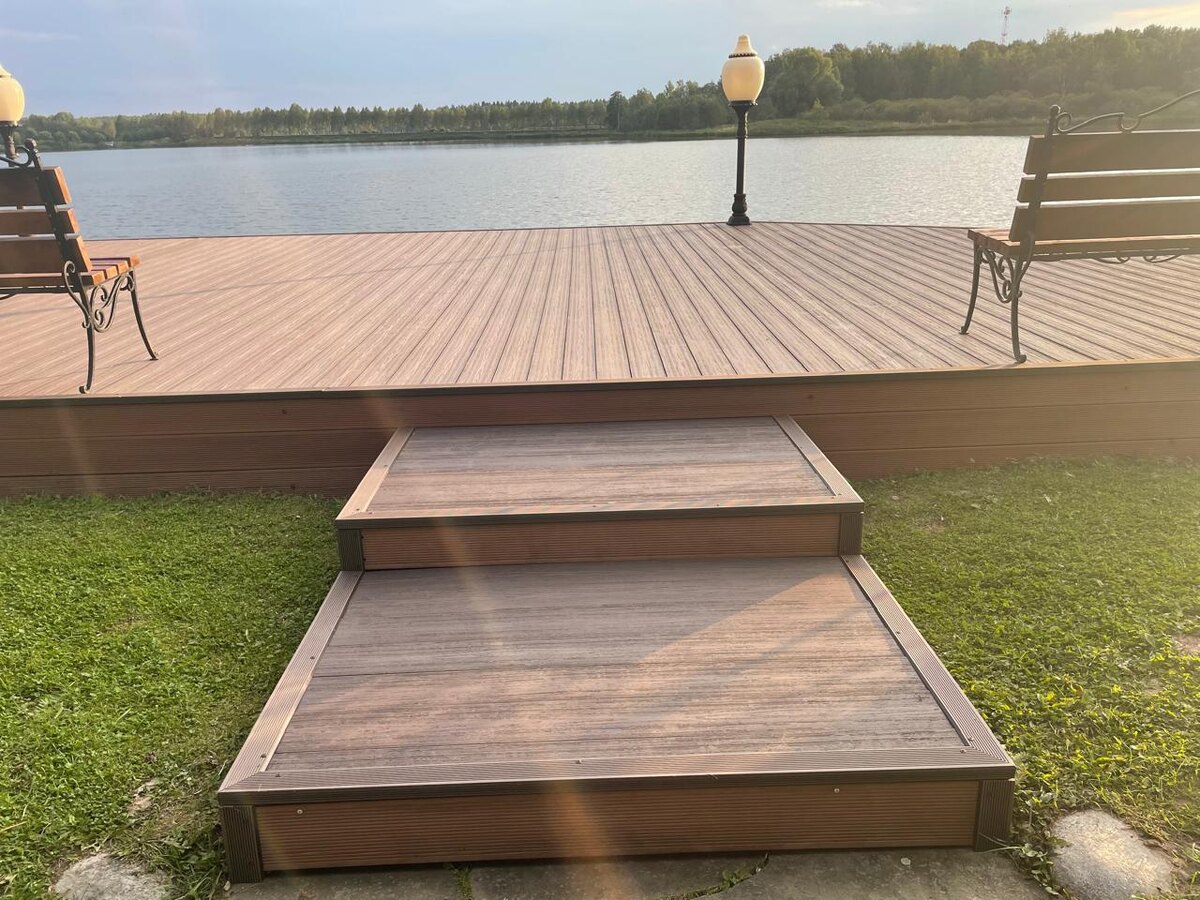 Ступени из ДПК (древесно-полимерного композита) – оптимальное решение для входных групп, лестниц и крыльца. Качественные и долговечные, они прослужат много лет без единого нарекания. Ступени всегда подвергаются максимальной нагрузке и постоянному неблагоприятному внешнему воздействию, поэтому к материалам изготовления предъявляют очень строгие требования. И всем этим критериям на 100 % отвечают ступени из древесно-полимерного композита – современного материала, сочетающего в себе свойства натурального дерева и высокопрочного термопластичного полимера. Специальные добавки и модификаторы (а их содержание достигает 10-15 %) еще больше увеличивают надежность, термостойкость и ударопрочность ДПК. После установки ступеней ДПК можно фактически забыть об их обслуживании, так как они не выцветают на солнце, не боятся влажности, им не страшны насекомые. Ступени ДПК используют для обустройства спусков любого типа, угла наклона, ширины и предназначения. Это может быть спуск к воде, многоуровневая