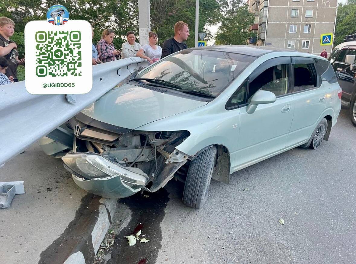 В Корсакове водитель въехал в дорожное ограждение 💥